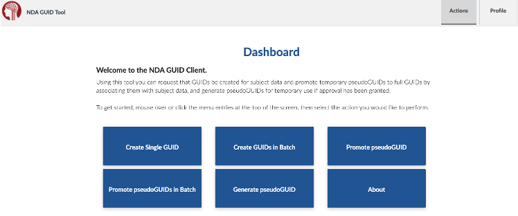 You now have access to the NDA GUID Tool. Please download the GUID tool here: https://nda.nih.gov/nda/nda-tools.html#guid-tool and carefully follow the instructions below.